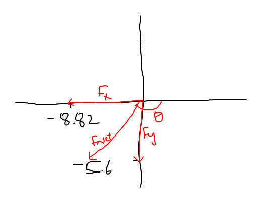 A 0.35 kg particle moves in an xy plane according to x(t) = - 11 + 1 t - 6 t3 and y(t) = 19 + 3 t - 8 t2, with x and y in meters and t in seconds. At t = 0.7 s, what are (a) the magnitude and (b) the angle (within (-180°, 180°] interval relative to the positive direction of the x axis) of the net force on the particle, and (c) what is the angle of the particle's direction of travel?