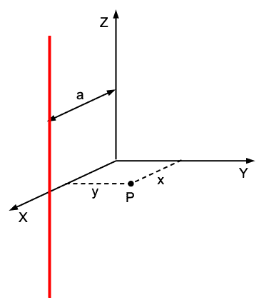 ##\Phi \left(x,y\right)=-\frac{\lambda _0}{2\pi \epsilon _0}ln\left(\frac{\sqrt{\left(x-a\right)^2+y^2}}{a}\right)##