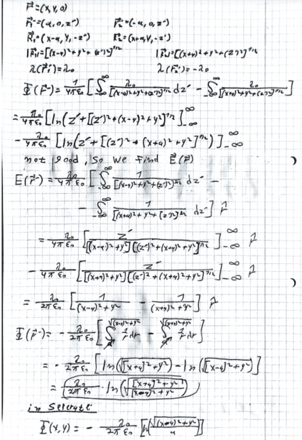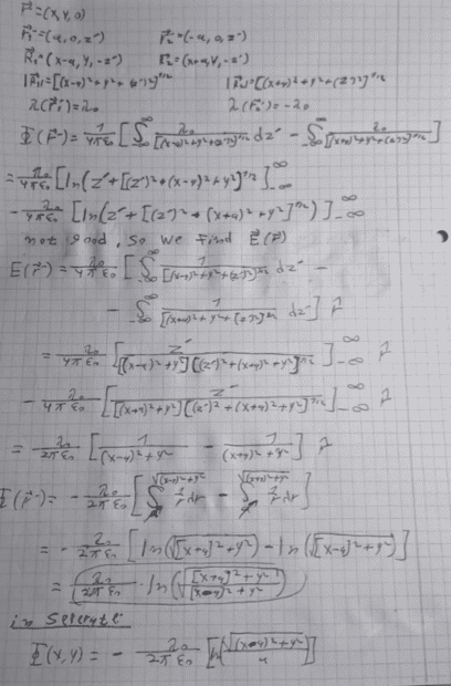 Here is another approach. Take your pick. You know (or you can derive) from Gauss's law that the electric field due to an infinite line of charge is $$\mathbf{ E}= \frac{\lambda}{2\pi\epsilon_0 r}\mathbf{\hat r}$$ where ##r## is the radial distance from the wire to the point of interest P.physics1000 said:Exactly, that is how you should graph it, was not given like that, but that is the point.