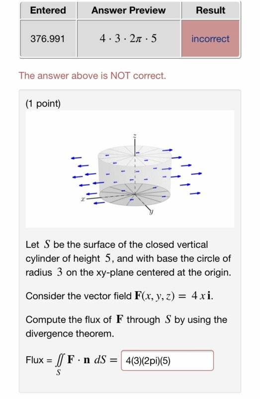 Solving the triple integral then gave me 4(5)(3)(2pi), which was incorrect.