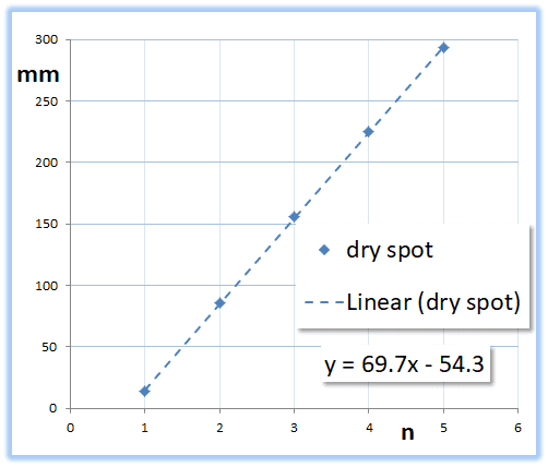 I thought 14 mm, 86 mm, 156 mm, 225 mm and 293 mm are the position where constructive interference happens 14 mm is the position of 1st maxima, 86 mm is the position of 2nd maxima and etc (measured from a certain position of center maxima)