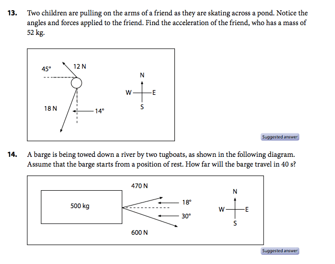 I can find the magnitude of Fnet from free body diagrams or from addition of vectors. My issue however is how do I know when to subtract the angle I found with the corner angle? I've attached two questions and the answers to them.