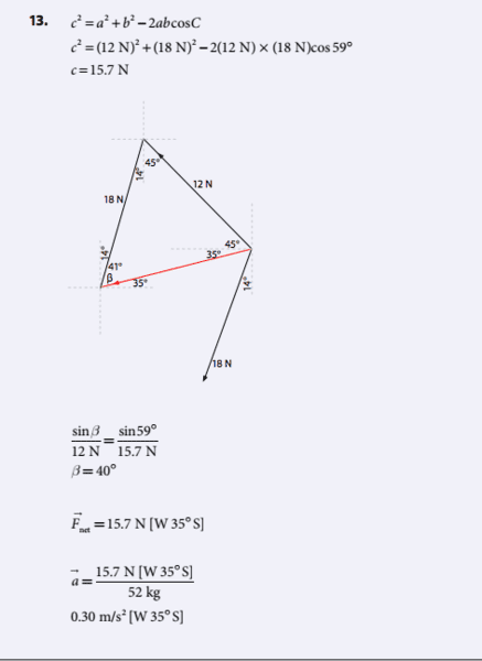 In the first question, the angle that was found is the resultant angle for Fnet. In the second question, the angle that is found is then subtracted by the corner angle. How do I know what angle is the correct one for Fnet? Can someone please explain to me possibly with a diagram?