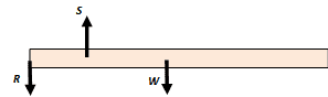 A uniform horizontal rod of mass 4 kg and length 500 mm, is hinged at the left hand side and supported at rest by a chain (S) attached 10 cm from the hinge.