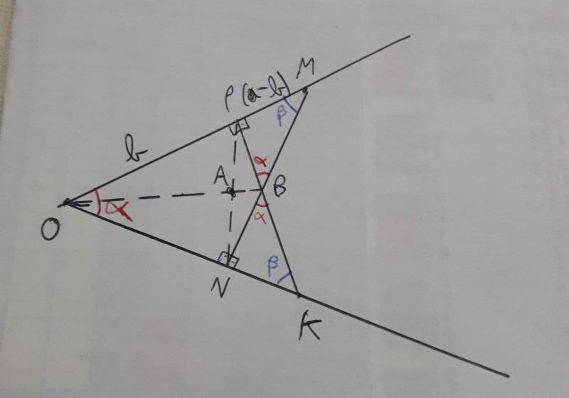 Cos(alpha)=b/OK ---> OK= b/cos(alpha)