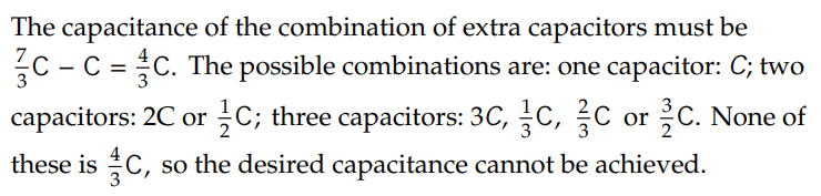 The discussion revolves around finding possible combinations of capacitors in a circuit to achieve a specific capacitance. The subject area pertains to circuit analysis and capacitor configurations.