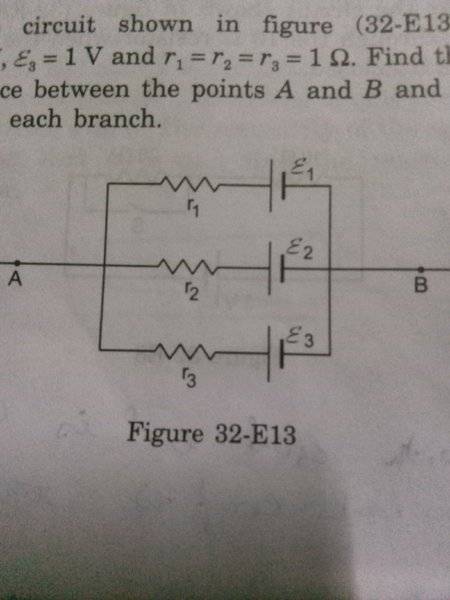 The discussion revolves around finding the potential difference across points A and B in a multi-cell circuit involving multiple voltages and resistances. The problem is situated within the context of circuit analysis, specifically applying Kirchhoff's laws.