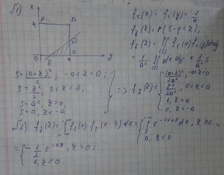 This discussion focuses on finding the probability density functions (PDFs) for independent random variables, specifically for uniformly distributed variables on the interval [0; a] and exponentially distributed variables. The first problem involves determining the PDF for the random variable z = x - y, where x and y are independent and uniformly distributed. The second problem addresses the same for exponentially distributed variables with the probability function p = exp(-x). Key insights include the importance of convolution in solving these problems and the distinction between cumulative distribution functions (CDFs) and PDFs, with a specific correction noted for the limits in the double integrals used in the calculations.