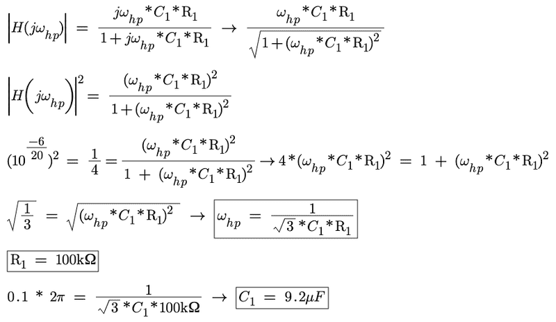 2. Have I set up my transfer function correctly for finding when 0.1 and 10 Hz will be -6db by setting it equal to 0.5?