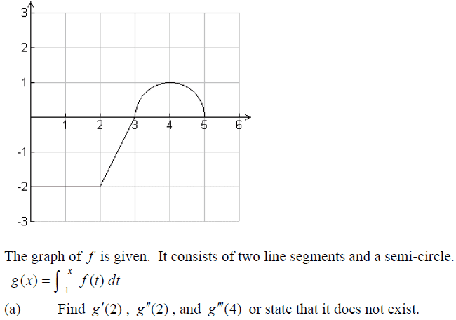Some participants suggest integrating the function g over specified intervals to better understand its behavior and differentiability. Others note that the graph provides a complete description of f, indicating a need to translate visual information into mathematical expressions. There is acknowledgment of complications due to features of the graph, such as sharp curves affecting the existence of certain derivatives.