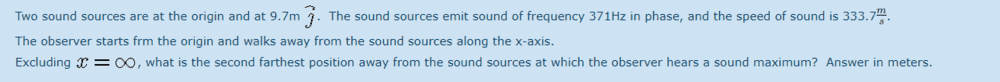 So I can find the wavelength using v/f = 0.8995. for the distances, d=x and d=sqrt(9.7^2+x^2). So the full equation would be