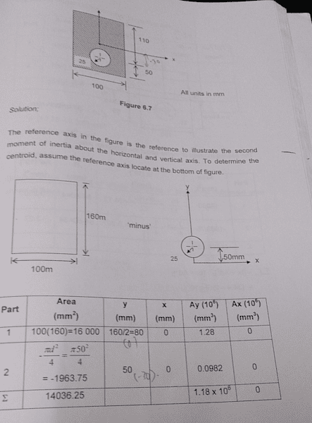 The discussion focuses on calculating the second moment of inertia for a shaded area with respect to the horizontal and vertical axes through its centroid. The participants clarify that the axes used for calculations differ from those depicted in the provided figure, specifically referencing the coordinates of 0mm and -30mm for the y-values in the calculations. Accurate interpretation of the problem statement and figures is essential for correct calculations. Misunderstandings regarding the axes can lead to incorrect results.