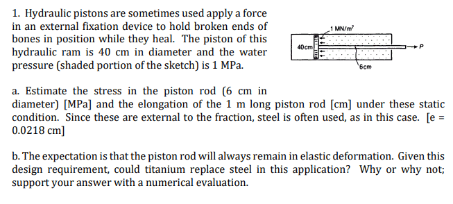 - Estimate the stress in the piston rod (6 cm in