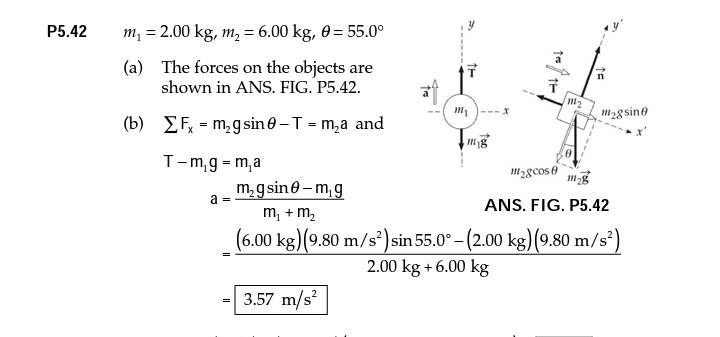 T-m2•g•sin55=m2•a
