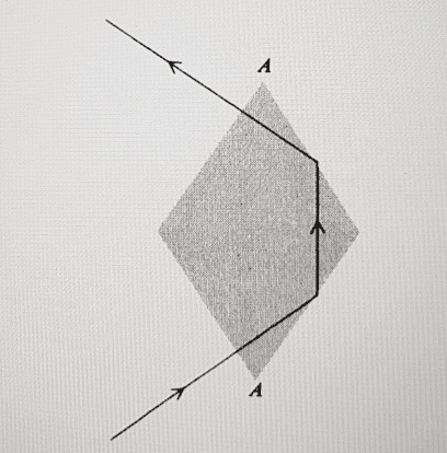 - Finding the angle at the apex (A) for which the outgoing beam is perpendicular to the side of a rhomb if the incoming plane wave is linearly polarized at 45 degrees to the plane of incidence and the beam is perpendicular to the first side.