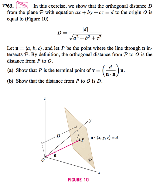 Finding the distance between origin and a plane.
