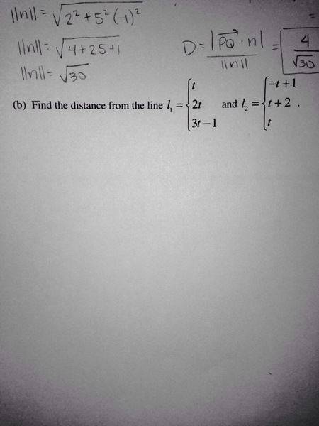 well I ASSUME that my L1 and L2 were given in parametric equation form Thus L1 would be : x=t y=2t z=3t-1