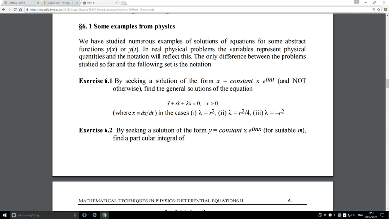 Hi guys, I am having trouble with ex 6.1 and 6.2. I am listed my ans below, and shown working. Could someone please advise. First I am not sure why I have to start with $$x=Ae^{imt}$$. Why cannot start with