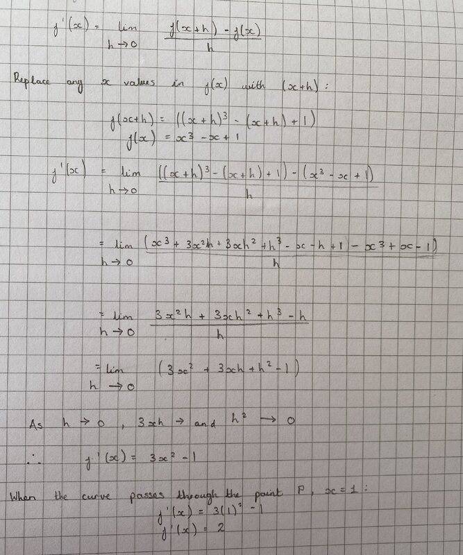 The curve y=x^3-x+1 passes through the points P and Q, with x-coordinates of 1 and 1+h respectively.Using differentiation from first principles frind the gradient of the curve at P.