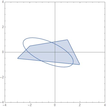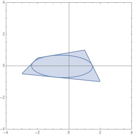 First, I set up a set of half-plane representations for the example polygon below and as you can see my ellipse is not fitting too well in the polygon: