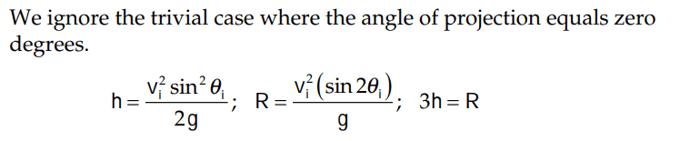 I also don't understand is why they say the ignore the trivial case where ##\theta_i = 0~rad##. Isn't it implied that ## \theta > 0## if ## R = 3h_{max}##?