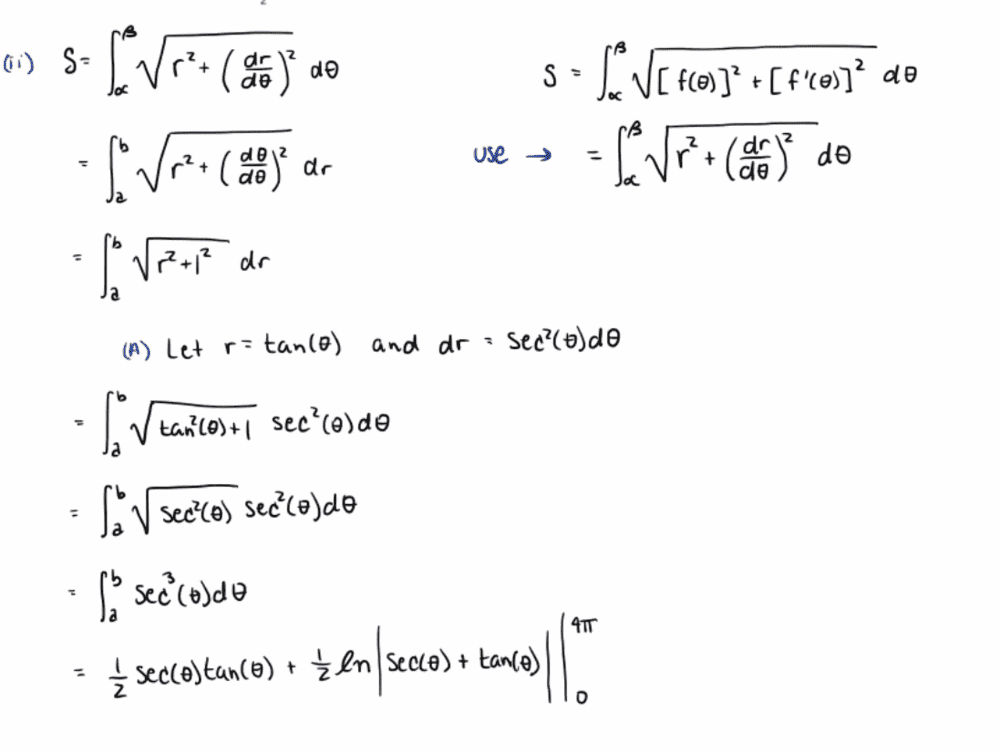 & = \int_\alpha^{\beta}\sqrt{r^2+\left(\frac{dr}{d\theta}\right)^2}d\theta \end{align}$$