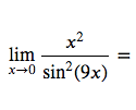 - Find the limit as x approaches 0 x^2/(sin(^2)x(9x))