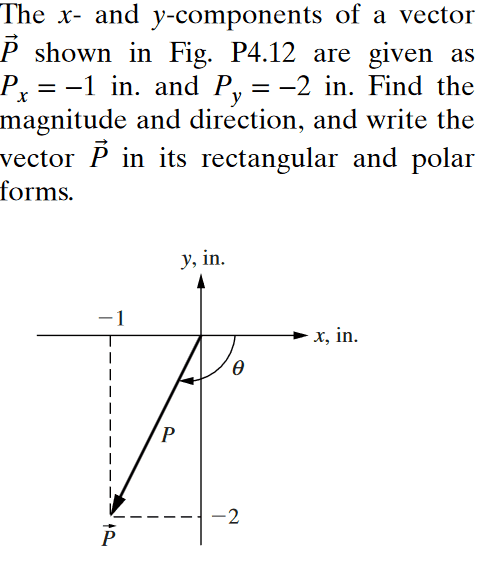 The discussion centers on calculating the magnitude and direction of a vector using the Pythagorean theorem and the inverse tangent function. The magnitude was correctly calculated as √5, while the angle was initially found to be 63.8 degrees using θ = arctan(-2/-1). However, confusion arose regarding the angle's representation on a graph, leading to an incorrect adjustment to 116.6 degrees. The correct approach involves recognizing the quadrant of the vector and applying the appropriate angle adjustments.