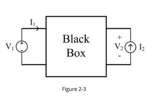 - We are given a black box that contains only linear circuit elements and a pair of ports. We conduct the following two experiments with this black box.