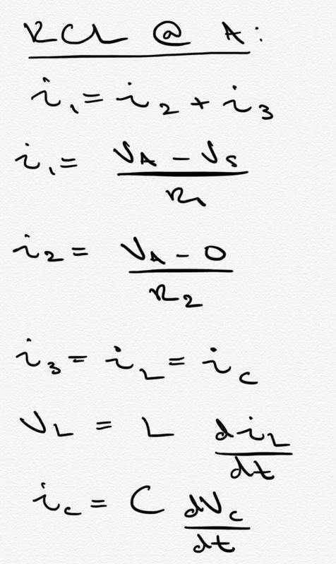 As you can see, I've tried using KCL at node A to find the 2nd order ODE that describes this circuit in terms of the capacitor voltage. The problem I run into, however, is that I can't find anything to put the node voltage at A in terms of. I've tried (not shown here) doing mesh current as well, but ran into similar problems. Can anyone point me in the right direction? I'm certain that after this I'll be able to find the transfer function by applying a Laplace transform since the initial conditions are 0 to make things simple.