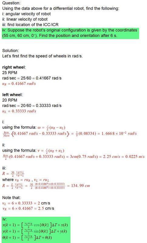 Using the data above for a differential robot, find the following: