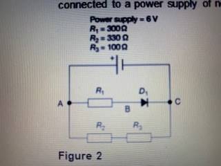i) Use Figure 2 to state the potential difference between points B and C when the diode is in forward bias and is conducting.