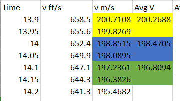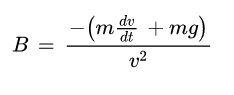 (As was pointed out by @cjl ) you have velocity data in sufficiently small time steps that you should be able to compute ##a_{avg}## and ##v_{avg}## for each time step. Then you will solve the eq in post #40 for ##\beta##, and make a plot using that eq and calculated values ##a_{avg}## and ##v_{avg}##. We are hoping to find that this plot for ##\beta## can be reasonably aproximated by a straight - nearly horizontal line, implying ##\beta## and hence ##C_d## are a constant. If it turns out that it isn’t straight-horizontal then we can talk about what to do.