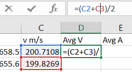 and for the average velocity what is v1 and v2 because i only have the sensor velocity as posted in the excel.