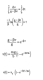 If you are just after terminal velocity, then solving for ##v(t)## via an integration is not necessary. You can, if you want. Like I said. Its not that equation you've written out above. That is for linear drag models.