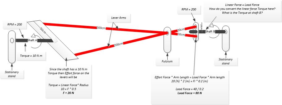 I have this attached file where you can see all the values and equations I have used but there is one bit where I need help. finding Torque on Shaft B, I appreciate if someone could advice how to convert the load force into Torque on the shaft.