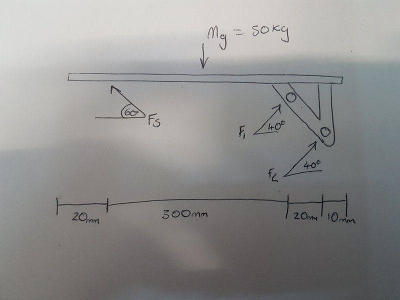 Participants have noted limitations in the provided dimensions and the need for clearer definitions of the forces' locations. There are unresolved aspects regarding the calculations and the specific distances involved in the moment summation.