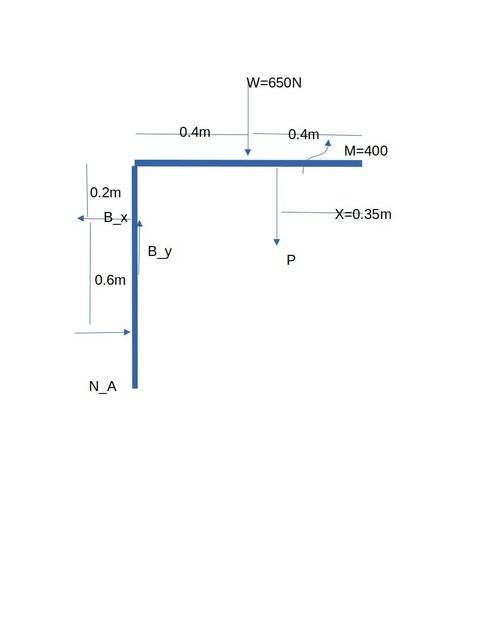 - The rigid body ABC is in equilibrium in the position shown. If ##W=650N, P=450N, M=400N.m, and x=0.35m##, then: (Neglect the the thickness of the frame):