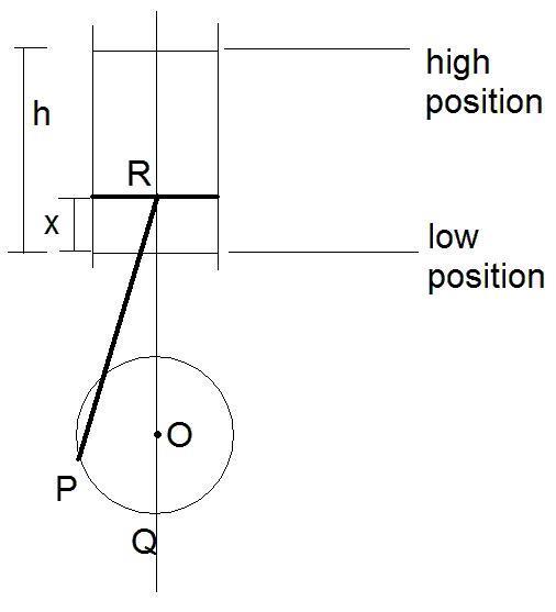 in a circle there is 2pi radians, therefore in half a cirlce there is pi radians, which means for that for pi radians the pistion moves for the high position to the low posotion.