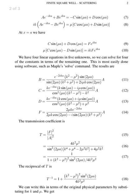- Clarifications are made regarding the applicability of certain equations to bound states versus scattering states, with some asserting that E>0 states will always have a non-zero probability of transmission.