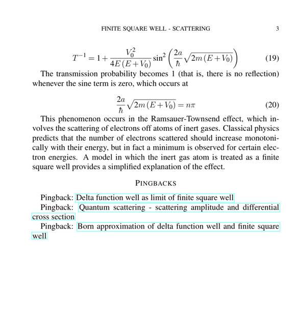 - It is noted that when the sine term in the transmission coefficient formula is zero, T=1, indicating no reflection, but this raises questions about the behavior of particles with E>0.