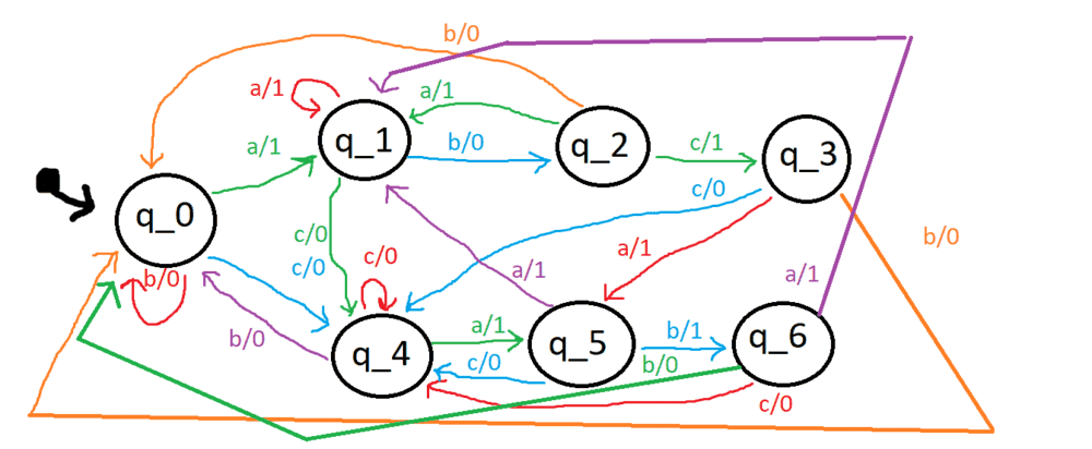 It seems to me like every case is considered. For each state, and output of a,b, or c is possible.