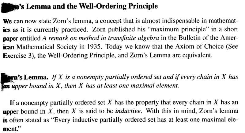 Proposition 6.1.2 relies on Zorn's Lemma and the notion of inductive sets ... ... so I am providing a short note from Bland on Zorn's Lemma and inductive sets ... ... as follows: