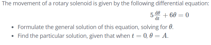 - The movement of a rotary solenoid is given by the following differential equation