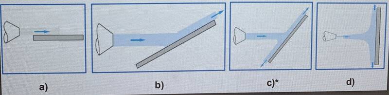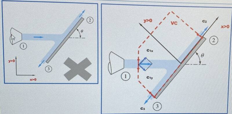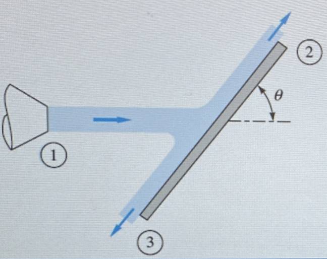- A two-dimensional jet of ##10\, \textrm{cm}## height sprays water at ##10\, \textrm{m}/\textrm{s}## which impacts, without friction, on an inclined plate...