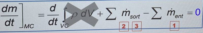 $$\left. \dfrac{dm}{dt}\right]_{MC}=(\dot{m}_2+\dot{m}_3)-\dot{m}_1=0$$