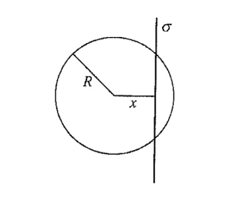 In the y-z plane there is an infinite long surface with charge density ##\sigma## that slices through a sphere with radius R. Determine the Flux.