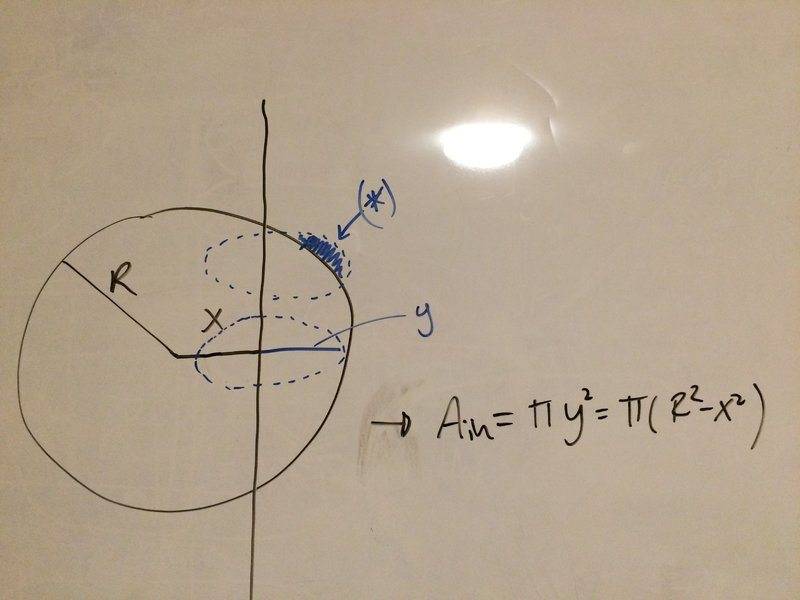 But my question is, what exactly is ##A_{in}##? It is the area within the sphere? That would just be ##\frac{4}{3}\pi r^3## but that doesn't make much sense.