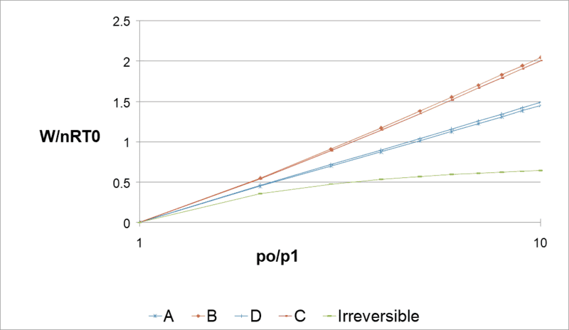 - Multiple reversible processes are suggested to transition from the initial to final states, including isobaric and isothermal steps, with participants discussing the work done and heat added in each case.