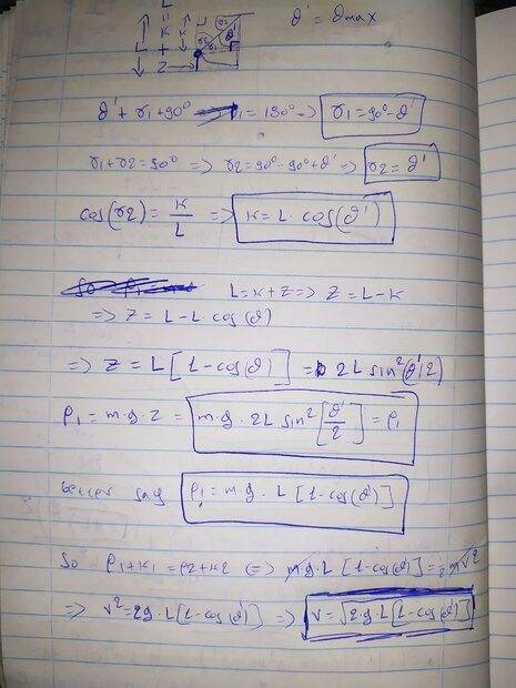 PS: By the way today I had exams in Physics and this problem was the first one I had to solve :p (unlucky) The question was to find the maximum angle θ that the pendulum can reach if we know that the magnitude of the acceleration is the same when the mass is located in the highest and the lowest point. The lowest point is when the mass passes exactly from the vertical position and the highest is when the angle θ(t) becomes maximum (which means that |V|=0).